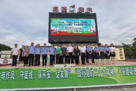 中经总网.中经在线湖南衡阳讯 ( 罗召俊 通讯员 李小华)为积极营造平安建设的浓烈氛围,进一步提升平安建设工作整体水平,充分调动社会各界和广大人民群众参与社会治安综合治理和平安建设活动的积极性,9月11日下午,衡阳县政法委联合县公安局、县检察院、县法院、县司法局、库宗桥镇人民政府及库宗桥镇综治中心、共青团、妇联、派出所、司法所及栾木村委会在栾木村部广场开展“践行党的二十大精神、平安建设进千家万户”主题宣传文艺汇演活动。