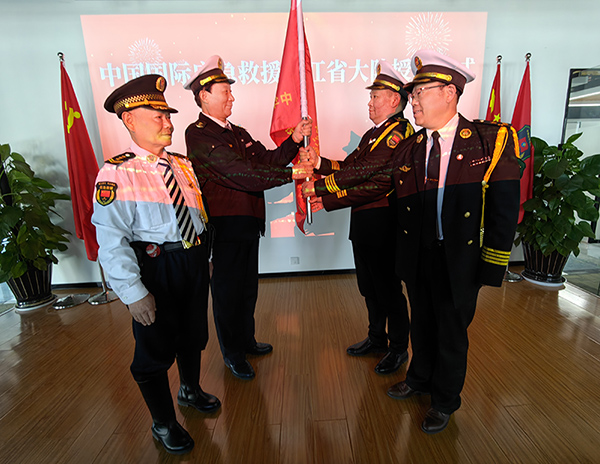 中国国际应急救援浙江省大队授旗仪式在杭州举行