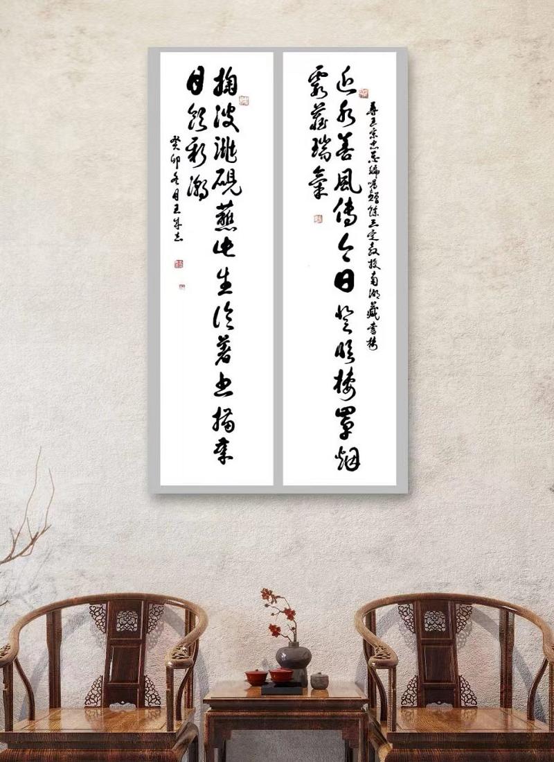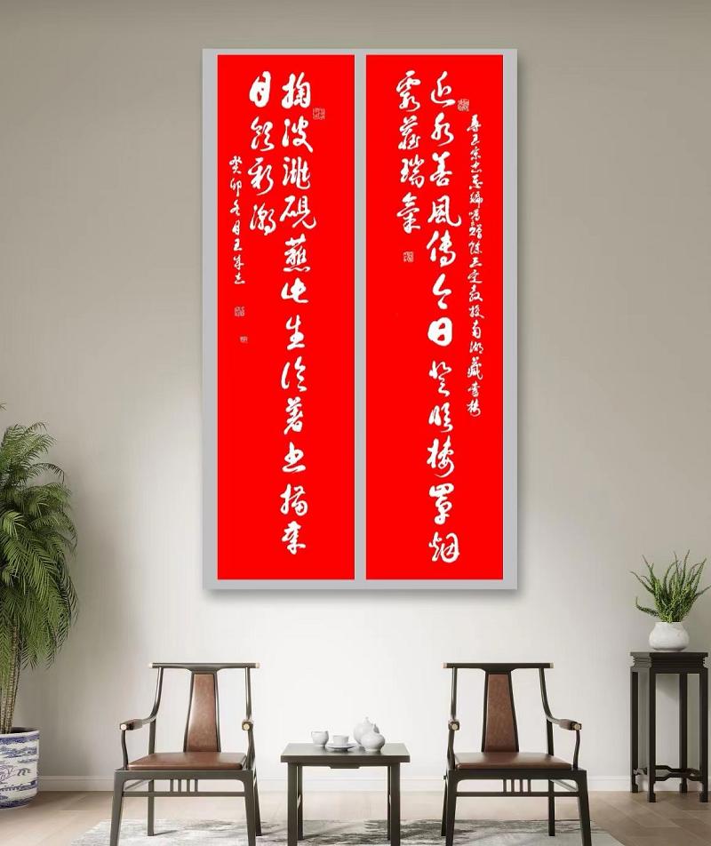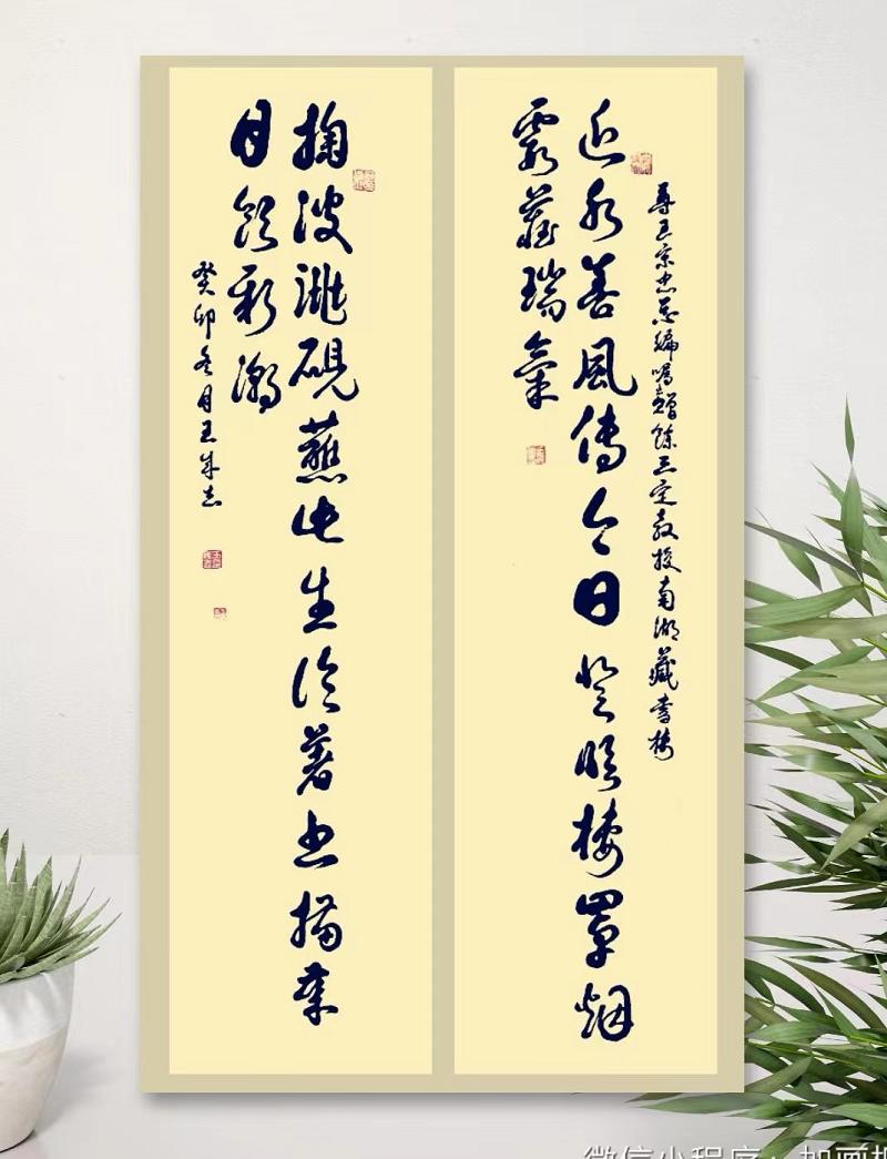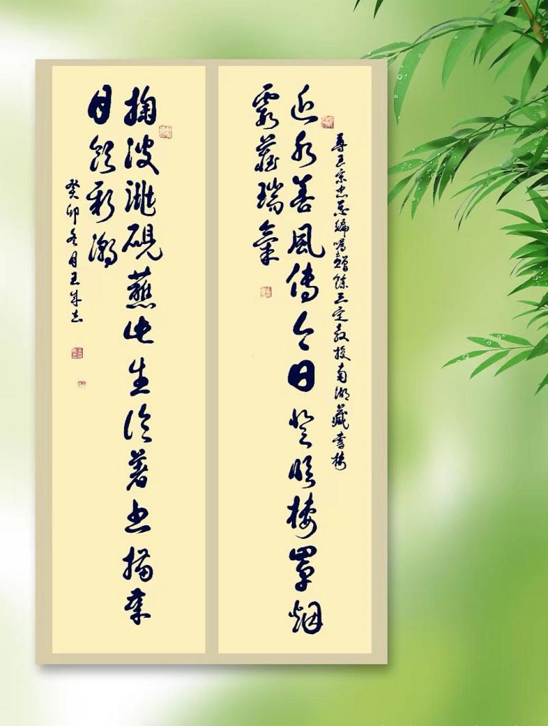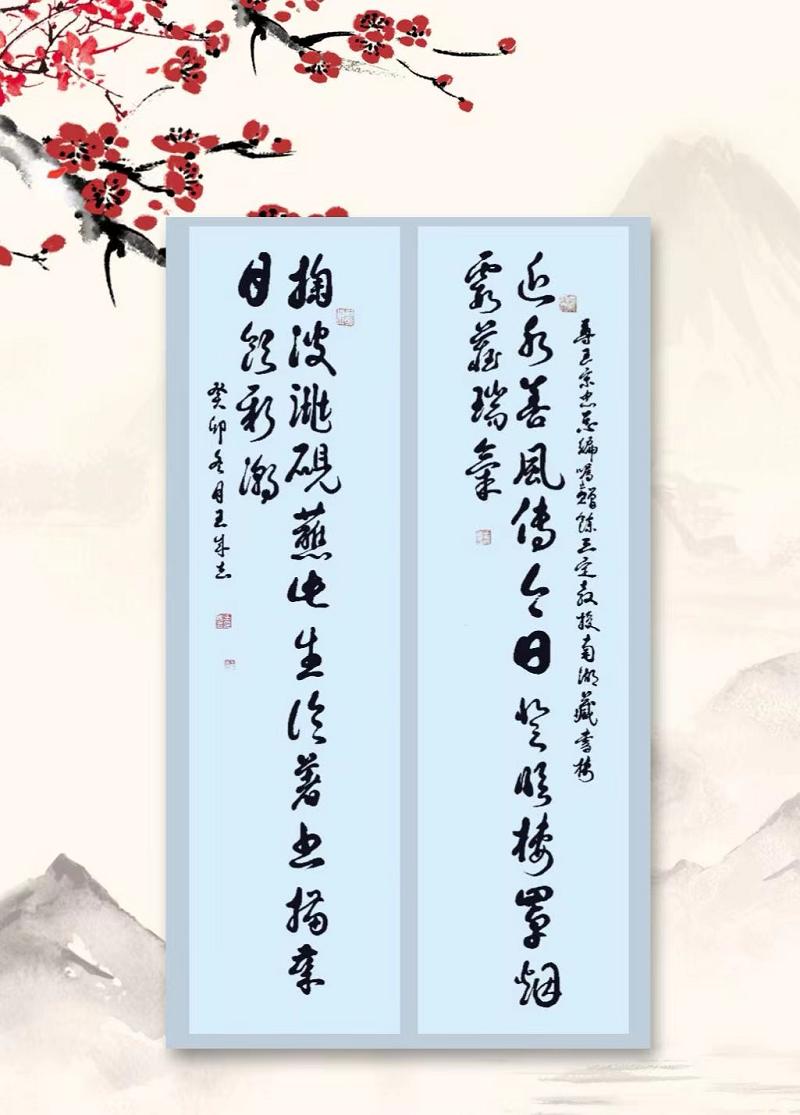 2022年12月18日,王京忠教授曾将王成志将军为他和井卫萍老师为余三定教授的藏书楼写的对联,题写了墨宝,并通过网络电子版的形式发到了老记者北京之家群。收到将军的墨宝,那时,我便有了拜访回谢之意,但愿望终究抵不过现实的无奈。虽因各种原因未能与将军谋上一面,但我还是被将军的热心与谦逊品质深深感动,透过手机平板的荧屏,将军飘逸俊秀的运笔,随着梅花的香气,袅袅将我全身包裹,仿佛冬日暖阳,温暖了我整个冬天。