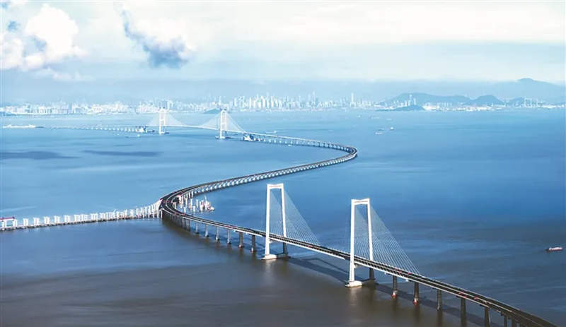 连接广东深圳至中山的深中通道,是粤港澳大湾区内部融合发展的标志性工程之一,该项目通车后,珠江口东西两岸的深圳市和中山市将进入“半小时生活圈”,进一步促进粤港澳大湾区城市群的互联互通。图为跨越万顷碧波的深中通道。图片来源:视觉中国