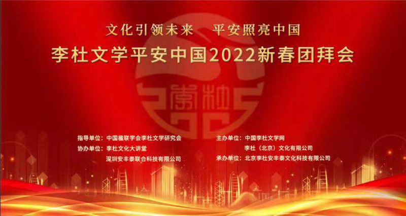 【本网讯】1月24日,由中国楹联学会李杜文学研究会指导,中国李杜文学网、李杜(北京)文化有限公司主办,李杜文化大讲堂、深圳安丰泰联合科技有限公司协办,北京李杜安丰泰文化科技有限公司承办的“文化引领未来  平安照亮中国”李杜文学平安中国2022新春团拜会在北京举行。