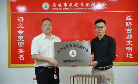 在陶冶会长高瞻远瞩深入浅出的发言之后,正式为长安文化研究会新媒体发展中心授牌。