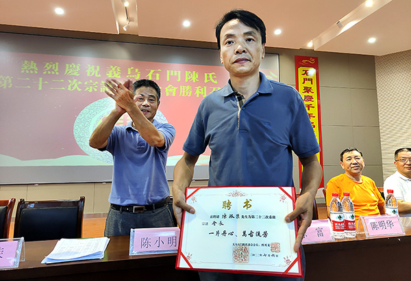 大会通过了家谱修撰工作章程,正式成立了石门陈氏第二十二次修谱理事会,陈根荣当选为陈氏第二十二次家谱修撰会会长;并通过了顾问、名誉会长、副会长、常务理事、理事以及编辑部等机构人员名单