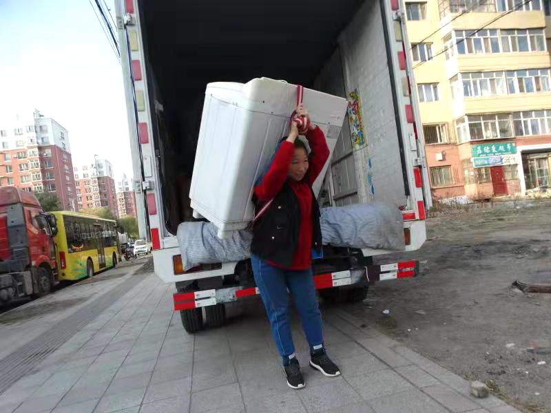 整整一车物件,5名搬家工或背或扛,健步如飞。唐雅红说,需要肩扛的包裹,重量都在50公斤以上,有些大物件重量超过三百公斤,需要几个搬家工一起上阵。