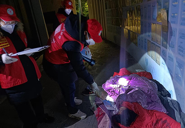 据不完全统计,从上月30日开始至今,义乌市社会救助中心已组织巡查集中救助巡查行动12次,出动临时应急救助15次,参与人员达200余人次,巡查救助覆盖稠城、稠江、北苑、江东等四个区域。登记排摸生活无着人员118人,发放棉衣棉被39件,发放方便面、面包等食品100余份,发放口罩500余个。巡查中,工作人员和志愿者们还会根据流浪人员不同的流浪原因,有针对性开展心理疏导和文明劝导活动,引导他们到救助中心或劝其尽早回家。