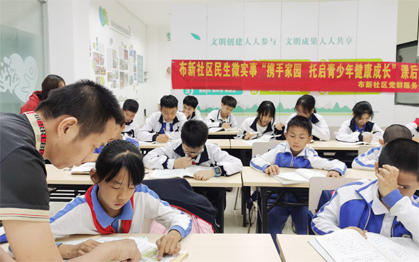 社区开展了“携手家园 托启青少年健康成长”--务工家庭子女课后托管服务,我再也不用为孩子课后辅导而操心了,真正解决了我们家长的后顾之忧。”孩子们快乐学习,更是帮助家长解决亲子关系。顾名思义,“携手家园 托启青少年健康成长”为了学生的安全和健康考虑,而提供的免费学习场所。民生微实事的党群服务是即布新街道结合社区新时代文明实践站,建立一支关爱青少年、具有奉献精神的志愿者队伍,通过开展党史学习教育、课业辅导、文体活动等志愿服务,用爱和陪伴为辖区孩子们打造“第二课堂”。