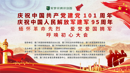中经网讯 2022年7月10日,为了喜迎党的二十大胜利召开、庆祝中国共产党建党一百零一周年、庆祝中国人民解放军建军九十五周年,由爱心厦门志愿者联盟·爱国拥军志愿者共建单位主办的“缅怀革命先烈,爱党爱国拥军——呼唤初心大会”在厦门市湖里区军梦双拥双创园一楼多功能厅召开。