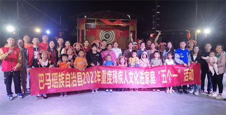 中经网·中经在线讯 为进一步丰富残障人精神文化生活,帮助他们融入社会,参与社会。10月14日,广西巴马瑶族自治县残疾人联合会组织开展了2022年重度残疾人文化进家庭“五个一”系列活动,即帮助残障人家庭“读一本书、看一场电影、游一次园、参观一次展览、参加一次文化活动。”来自自治县残疾人联合会班子领导,县民族特殊学校老师,8名重度残障学生及其家属各1名以及县残疾人志愿者服务队全体成员,康复文体股职工等参加了活动。