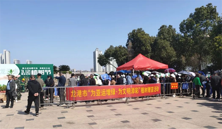 5000余株(盆)丹桂、紫薇、茶花、长寿花、金桔等绿植吸引了市民的目光,很多市民还打电话让亲戚朋友到现场领取。赠送活动持续了3个多小时,2000多名市民领取到了心爱的植物,满心欢喜地带回了家。