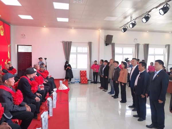 参加活动的领导们向老党员们行礼