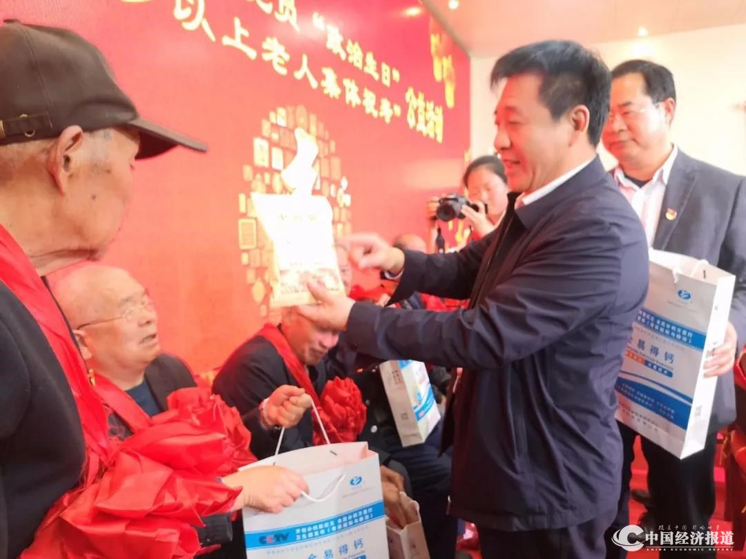 元化集团董事长张建国向老党员们赠送健康产品--全易得钙