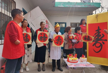 中经网·中经在线河南洛阳讯10月10日是“中国好人”樊石滚70岁的生日。伊川县爱心粥公益协会和深圳市建辉慈善基金会来到伊川县白沙镇焦王村,为这位可敬的老人献上了生日的祝福,并提供了志愿服务。