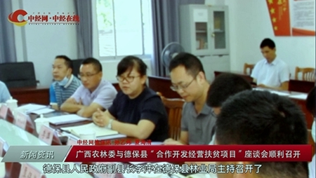 【视频导读】为助力德保乡村振兴,创新产业综合发展 ,7月14日上午9时,德保县人民政府副县长李萍在德保县林业局主持召开了与广西农林委德保拜访团一行关于“合作开发经营扶贫项目”座谈会。德保县人民政府四级调研员杨昭博主持会议,县林业局、县自然资源局、县乡村振兴局、县农业农村局及巴头乡、东凌镇有关领导参加会议;中国长城绿化促进会农林经济委员会副主任兼广西农林经济委员会主任邱勇,广西经济体制改革研究会副秘书长覃宝崇,中国管理科学研究院媒体中心(中经网)乡村振兴频道副主编孙乙纬,广西农业产业行业协会执行会长陈朝阳等参加座谈会。