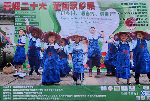 记者和前来参加活动的浙江外国语学院乔桂强老师的攀谈中得知,由转塘街道党工委主办的“外桐坞乡村复兴少年宫”国际儿童公益书画展,是杭州近年来难得的一场享受艺术与大自然的豪华文化盛宴。用儿童的眼光和画笔赞颂祖国的改革开放,乡村振兴、和谐共富的家乡美景,用这种特殊的方式喜迎二十大的召开,举办方高明至极,活动开展的别开生面,意义非凡。