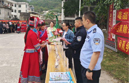中经总网·中经在线广西巴马讯 为进一步抓好禁毒宣传教育“六进”工作,以庆祝广西“壮族三月三”传统文化体育系列活动为契机,广西巴马瑶族自治县凤凰乡综治中心联合派出所到活动现场开展“传统文化+禁毒”主题宣传活动。