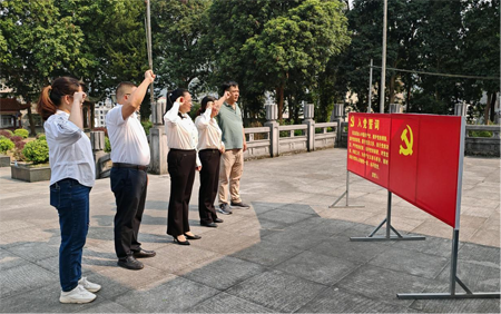 青山苍翠,松柏常青。在庄严肃穆的革命烈士纪念碑前,全体人员向革命烈士们默哀三分钟,行三鞠躬,敬献黄花,列队绕行瞻仰纪念碑、重温入党誓词等方式,以此表达对革命先烈们的哀思和敬仰之情。