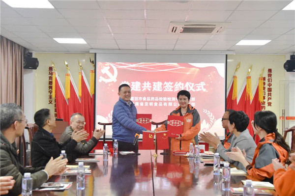 为深入学习贯彻落实党的十九大和十九届二中、三中、四中、五中、六中全会精神,搭建党建共建平台,形成“共建组织、共抓队伍、共享资源、共谋发展”的党建工作新格局,莆田市食品药品检验检测中心党支部与亚明食品党支部协商一致达成共识,一同签订了党建共建合作协议书、结对帮扶协议书。