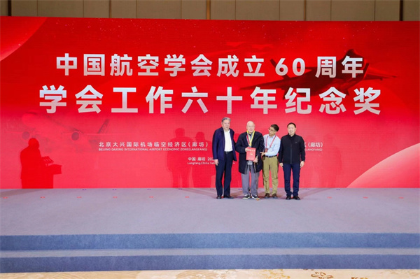 2024年2月28日,中国航空学会成立六十周年纪念活动上举行了中国航空学会成立六十年学会工作纪念奖颁奖仪式。林左鸣理事长、李春宏监事长共同上台,向中国航空学会名誉理事、《航空知识》编委会名誉主任谢础先生颁发了唯一的“学会工作六十年纪念奖”。