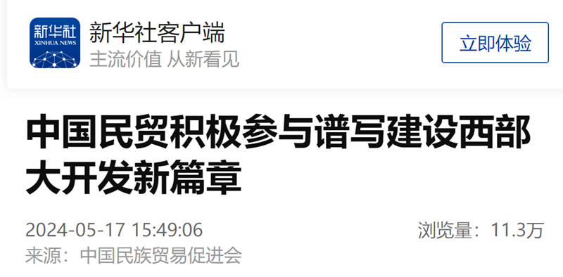 新时代,看西部。广大社会组织应该为助力西部省区市推进乡村振兴和中国式现代化建设标定战略方位。全社会,齐动员。中国民族贸易促进会立足全国性社会组织职能定位,动员社会力量、整合社会资源,以中国一乡一品产业促进计划为平台,以县域乡村振兴为抓手,为协同构建新时代西部地区高质量发展新格局贡献力量。
