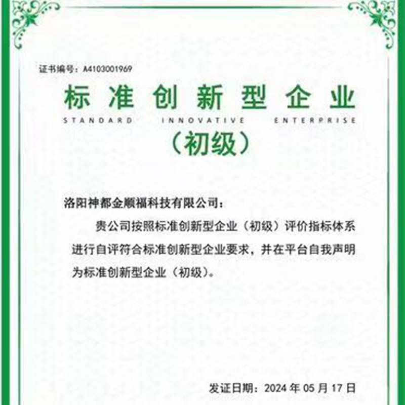 中经总网河南讯:日前,洛阳神都金顺福科技有限公司荣获国家级荣誉,被授予“标准创新型企业”称号。