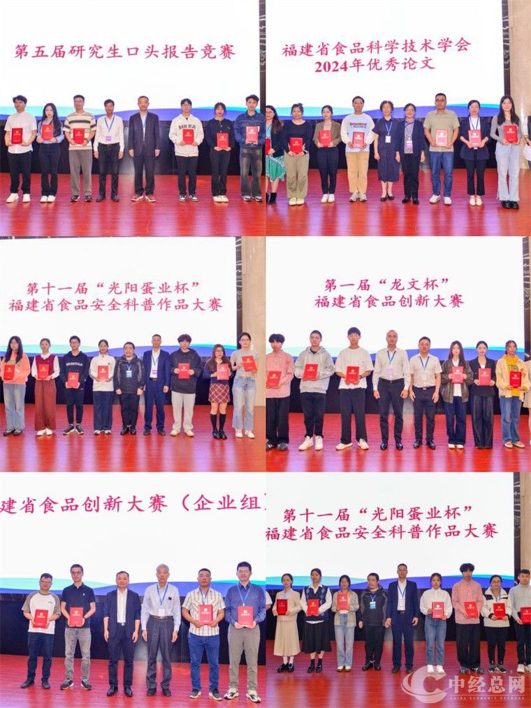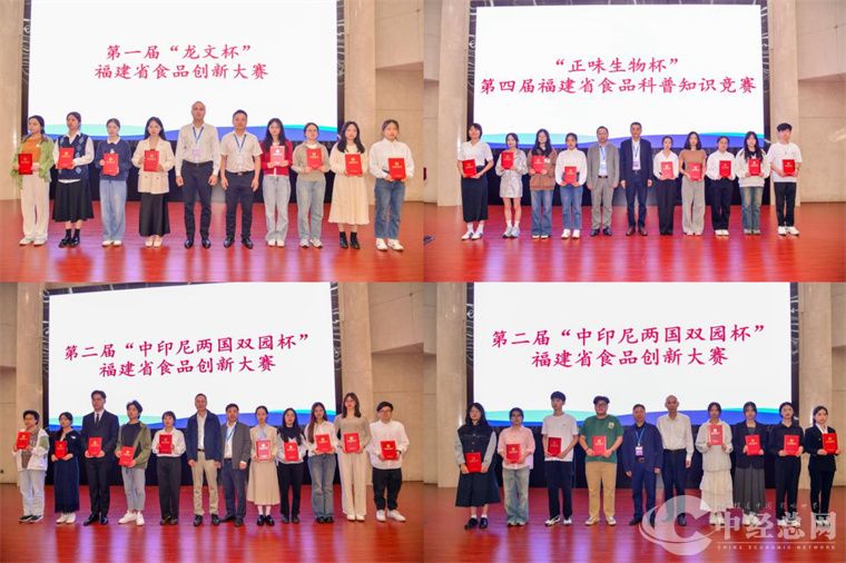 开幕式上还举行了“正味生物杯”第四届福建省食品科普知识竞赛、2024年第二届“中印尼两国双园杯”福建省食品创新大赛、2024年第一届“龙文杯”福建省食品创新大赛、2024年福建省食品创新大赛(企业组)、“光阳蛋业杯”第十一届福建省食品安全科普作品大赛、福建省食品科学技术学会2024年优秀论文、第五届研究生口头报告竞赛等系列比赛的颁奖仪式。一些列竞赛不仅为食品科技提供了展示创新成果的平台,也激励了研究生和学生群体在食品科学领域的研究和探索。