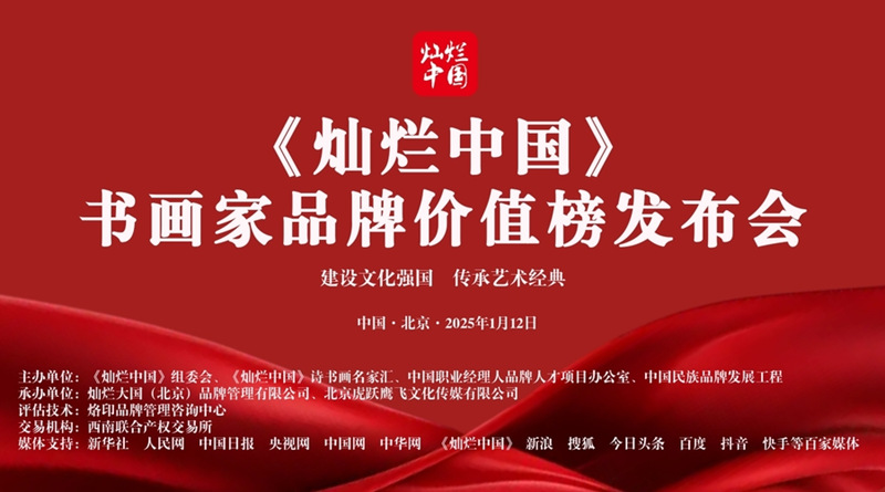 中经总网/世界品牌研究院北京讯:2025年1月12日,《灿烂中国》书画家品牌价值榜发布会在北京《灿烂中国》总部如期举行。在建设文化强国的战略背景下,书画艺术的高质量发展备受重视。在文化复兴,书画复兴的大浪潮下,《灿烂中国》诗书画名家汇应运而生,随之而来的,《灿烂中国》书画家品牌价值榜也顺势而起。《灿烂中国》书画家品牌价值榜作为评价书画家艺术成就和市场价值的重要参考,对于推动书画艺术的繁荣发展具有积极的意义。书画家价值榜不仅是对书画家艺术水平的认可,更是对其市场价值的客观评价,它有助于激发书画家的创作热情,提升书画家的社会认知度和影响力。《灿烂中国》书画家品牌价值榜通过传播、评选、评估、交易所挂牌交易,为艺术市场及收藏市场提供了重要的参考依据,促进了书画作品的合理流通和价值实现。