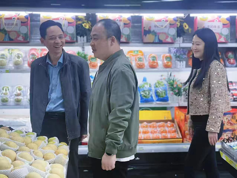 文武斌一行首先来到金贸店,一进店门,便被那琳琅满目的新鲜果蔬所吸引。货架陈列整齐有序,购物通道宽敞明亮,员工们面带微笑,热情地为顾客挑选商品、答疑解惑,收银台前秩序井然。