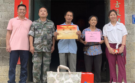 为进一步营造拥军优属、拥政爱民的浓厚氛围。近日,广西巴马瑶族自治县东山乡退役军人服务站为获得年度“四有”优秀士兵的现役军人蒙升世、兰华、韦金贵等3人的家属送去了喜报和慰问金。