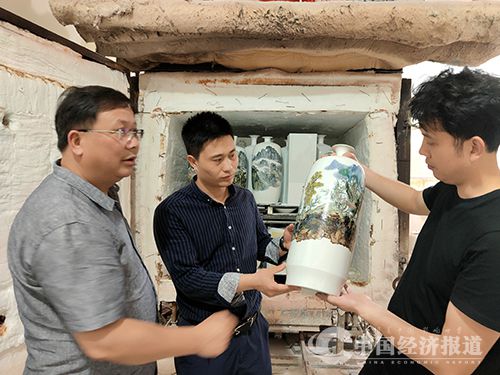 材料学权威李德真教授(左)、陶瓷专家付启宇(中)、画家谢古道是个高温颜色釉山水瓷画艺术和科技攻关的国内前卫组合