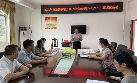 活动现场,自治县残联党支部书记、理事长覃远清首先和大家回顾了“七夕”节的由来与习俗,加深大家对“七夕”节文化内涵和传统习俗的认识,感受到了中华民族优秀传统文化的独特魅力。