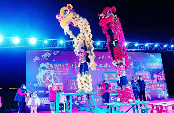 这些独具特色的传统文化让游客在南昆山居感受到春节热闹欢快的气氛,使他们对丰富多彩的当地文化和旅游资源有了更深入的了解。为点燃活动高潮,南昆山居重金聘请专业艺术团队——惠州市歌舞剧团,它是广东省十强文艺院团,以精湛的演出赢得了各界人士的高度赞誉。“惠州歌舞团—文艺下乡”表演团队经过精心策划,打破以往舞台风格,在中外文化以及古今潮流中做到完美融合,把传统古曲、舞蹈等中华文化搬上舞台,通过专业的舞蹈实力和娓娓动听的歌声,呈现出现代流行、嘻哈、电子等不同种类的音乐风格,给游客观众们展现出中华歌舞文化的魅力。