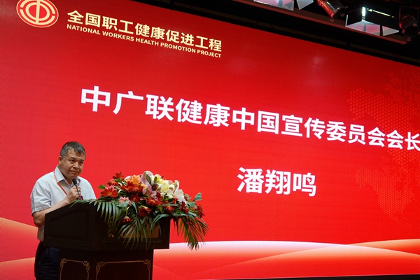 中广联健康中国宣传委员会会长潘翔鸣在会上发言《健康知识普及对顺利实现健康中国建设的重要意义》(中经报道王海珠/摄)