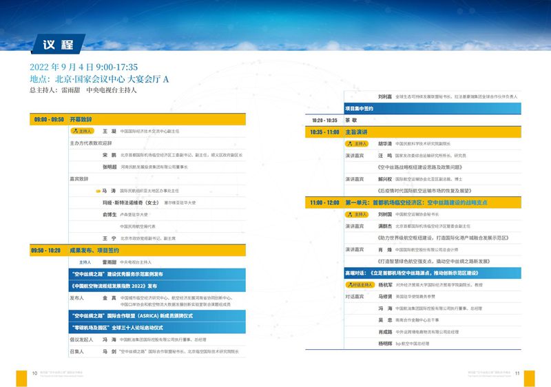 第四届“空中丝绸之路”国际合作峰会会议议程