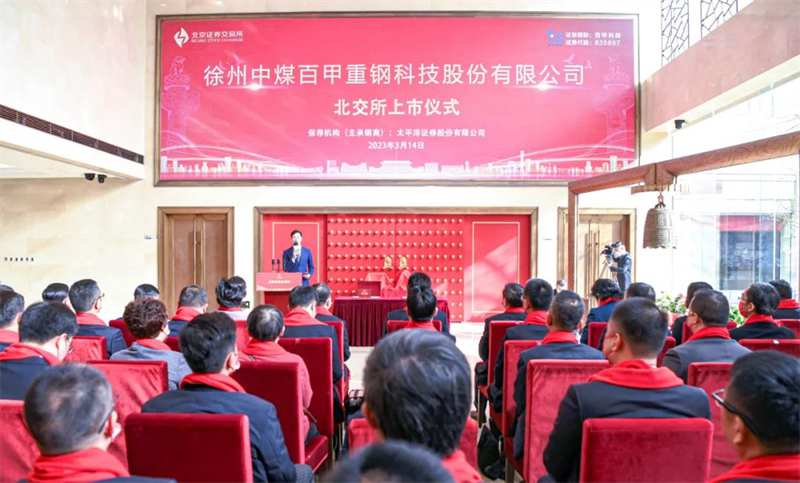 随着徐州中煤百甲重钢科技股份有限公司在北京证券交易所敲钟上市,徐州高新区共有5家本土民营企业成长为A股上市公司。其中在上交所上市的有:江苏华辰;在深交所上市的有:云意电气、五洋停车;在北交所上市的有:格利尔、百甲科技。上市企业数量在苏中、苏北高新区中位列第一。
