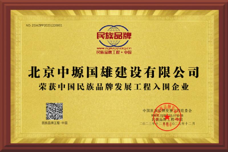 经中国民族品牌发展工程组委会专家评审,北京中塬国雄建设有限公司荣获中国民族品牌发展工程入围企业,为民族品牌赋能,树立民族品牌形象,实现民族品牌核心价值观 。